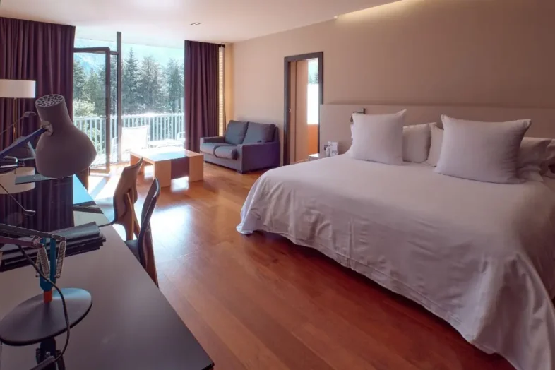 Allotjar-se a la Tower Room és viure una experiència única. La suite està instal·lada a la torre de l’emblemàtica edificació d’Andorra Park Hotel. Principals característiques: 50 m², capacitat per a 2 adults.