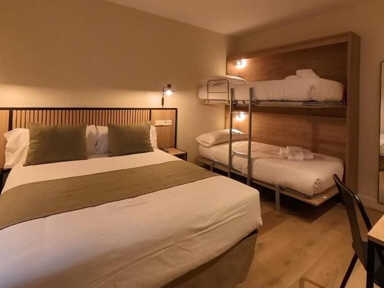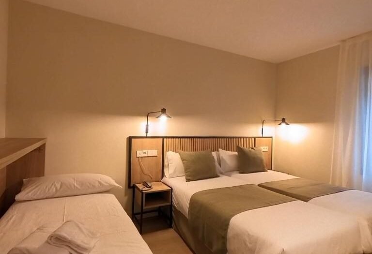 Habitació triple amb capacitat per a 3 persones. Opcions de 3 llits individuals o llit doble + llit individual.